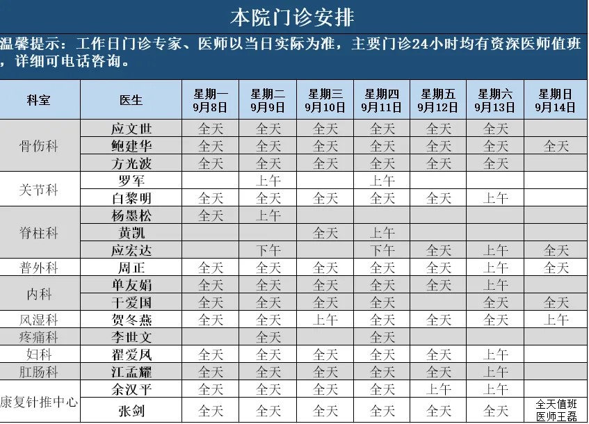 9月8日—9月14日本院门诊安排表