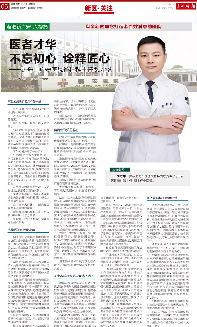 人物名片:戈才华,师从上海长征医院骨科刘铁龙教授,广安医院脊柱科主任,副主任中医师。