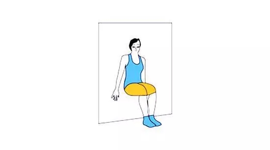 ②静蹲练习:患者两腿分开,两脚之间的距离比肩膀稍宽,身体保持直立,不能向前倾。脚尖和膝关节朝向前方,不得“内外八字”。此时双膝开始弯曲下蹲,双膝弯曲角度可根据练习者身体情况和肌肉力量进行调整。对于身体情况好、大腿肌肉力量强的患者,下蹲角度可以达到屈90”;而对于身体欠佳和大腿肌肉力量弱的患者,双膝轻屈即可,这时半蹲位置较高,患者较省力。随着肌力的増加,再增大屈膝角度,最大角度至无痛时不超过90°为宜。两腿缓慢下保持2~5分钟,再缓缓站立,每次之间休息5~10秒,5-10次为一组,每天做2组。