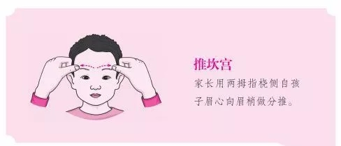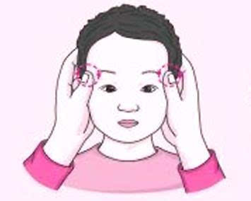(一)、常用推拿手法:开天门100次、推坎宫100次,揉太阳穴50次,清肺经300次、清天河水300次。