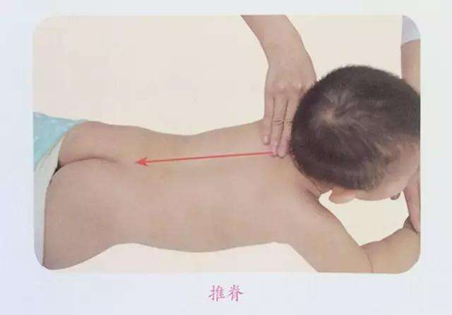 (三)、由风热引起的发热,需要在常用手法的基础上外加:推脊100次(用右手食、中二指面,自上而下从大椎至长强直推)