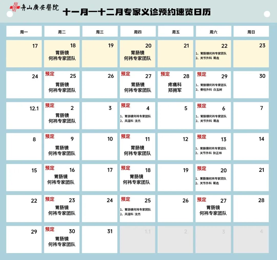 义诊时段:11月22日、12月06日、12月20日(周六)