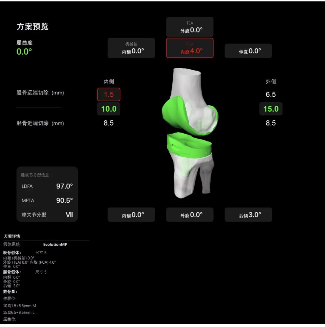 通过患者的CT数据,系统构建出膝关节的三维数字模型,精确评估骨缺损的范围与形态。医生可以在虚拟空间中,提前模拟手术过程,为患者“量体裁衣”,规划出假体安放的最佳位置、角度以及所需填充骨缺损的特殊垫块型号。
